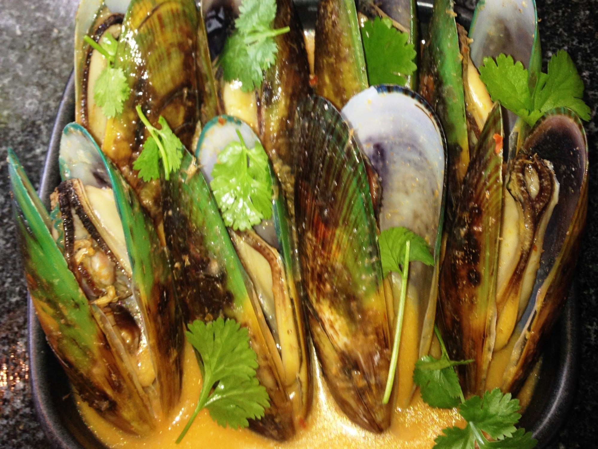 Onion in some oil till it is translucent, add the Curry Paste and cook it till fragrant. Add the coconut milk/cream and the mussels. Cover tightly with
