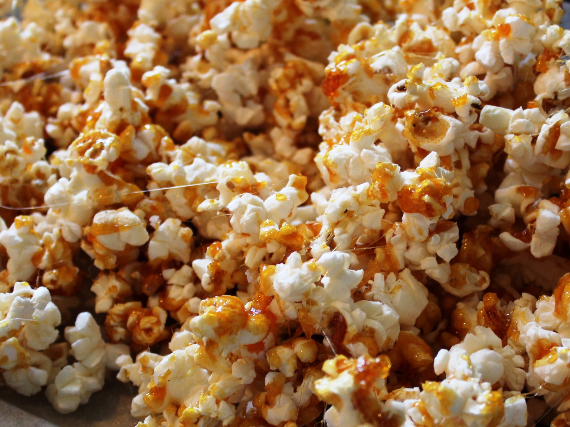 Pop a bag of microwave popcorn and spread on a lined pan. (I used cooking paper + some spray)