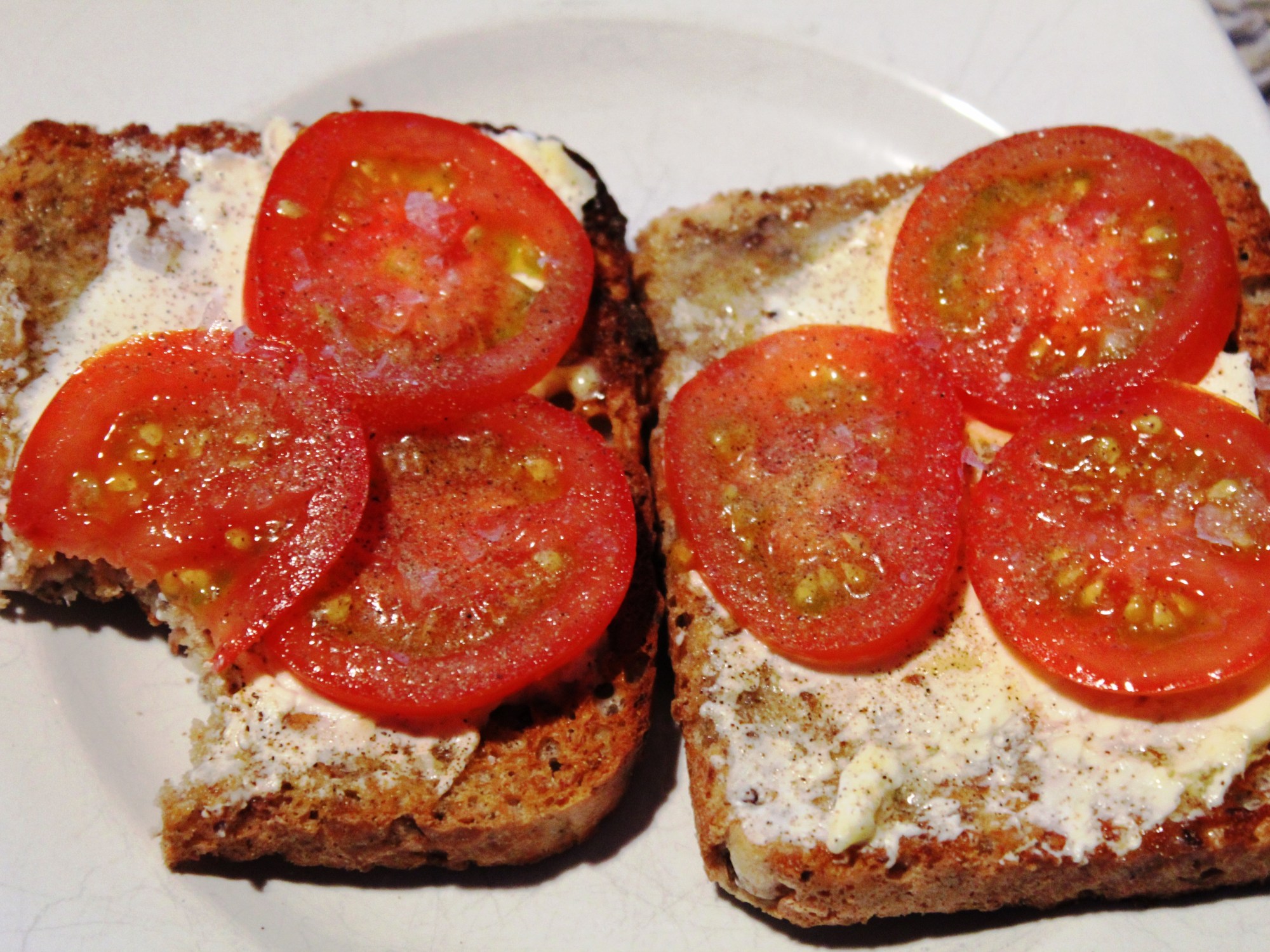 I love Vogels toast, even though you have to put it down twice! My two favourites are cream cheese and fresh tomato or smashed avocado. Both of which with lashings of maldon sea salt and pepper (I like white personally)
